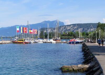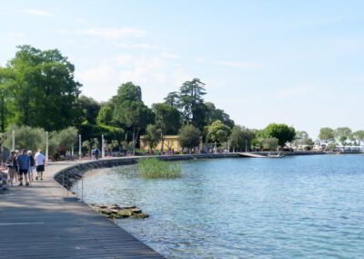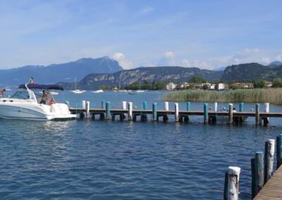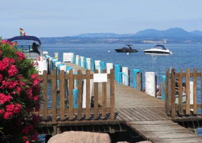 Lazise is a charming town on the eastern shore of Lake Garda, the largest lake in Italy. It has a long and rich history, dating back to the Roman times, when it was a fortified settlement on the lake. Lazise still preserves its medieval walls and castle, built by the Scaliger family, the lords of Verona, in the 13th and 14th centuries. Lazise is also known for its beautiful churches, such as the Romanesque Church of Saint Nicolò, which overlooks the old port, and the Baroque Church of Saints Zenone and Martino, which houses some precious paintings. Lazise is not only a place of culture and history, but also a destination for relaxation and fun. The town offers a variety of activities and attractions for visitors of all ages and interests. You can enjoy the natural beauty of the lake and the surrounding hills, either by boat, bike, or on foot. You can also pamper yourself at the Villa dei Cedri, a natural spa with thermal pools and treatments, located in the nearby hamlet of Colà. If you are looking for some adrenaline and excitement, you can visit the amusement parks of Caneva Aquapark and Gardaland, which are just a few minutes away from Lazise. Lazise is a perfect destination for a holiday on Lake Garda, combining history, nature, and entertainment. Whether you want to explore the ancient town centre, relax on the beach, or have some fun at the parks, Lazise has something for everyone.