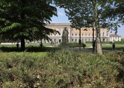One of the most distinctive features of the Giardino Ducale is its balance between formality and openness. While parts of the garden still preserve the symmetry of its original design, others flow naturally into shaded avenues and quiet corners that invite peaceful reflection. Tall trees, graceful sculptures, and water features create a timeless atmosphere that blends artistic refinement with natural beauty. The gardens also provide splendid views of the surrounding royal buildings, including the Palazzo Reale and the Armeria Reale, offering a reminder of the site’s role as a symbol of dynastic power.