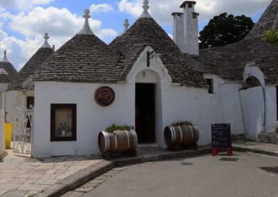 The two main districts of Alberobello, Rione Monti and Aia Piccola, are the best places to explore the town’s heritage. Rione Monti, with its winding streets and more than a thousand trulli, is the most famous and often filled with visitors browsing small shops and cafes. Aia Piccola, on the other hand, remains more residential and tranquil, offering a glimpse of everyday life in this extraordinary setting. Both areas together form a living museum that celebrates Puglia’s rural traditions and architectural ingenuity.