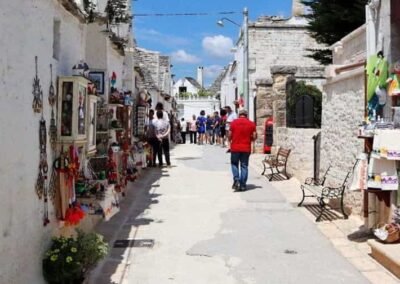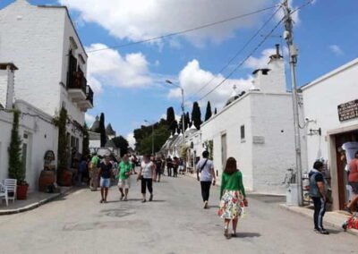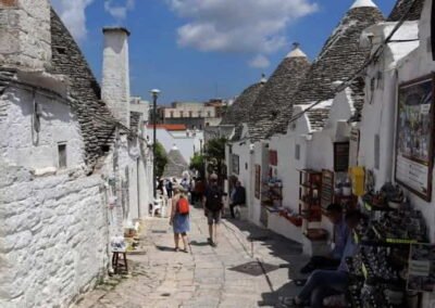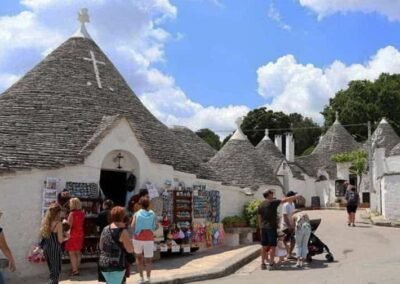 Beyond its unique buildings, Alberobello is also a place of vibrant culture and warm hospitality. The town hosts numerous local festivals, religious processions, and folk events that reflect the deep-rooted spirit of southern Italy. Traditional dishes such as orecchiette pasta, local cheeses, and fresh olive oil showcase the richness of Puglian cuisine. From the nearby olive groves to the vineyards of the Itria Valley, the surrounding landscape complements the town’s charm with its natural beauty and agricultural abundance. Alberobello is more than just a destination; it is an experience that combines history, architecture, and authenticity. Walking through its whitewashed alleys under the bright southern sun, visitors feel transported to another time, discovering a place where simplicity and creativity come together in perfect harmony.