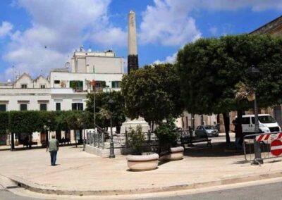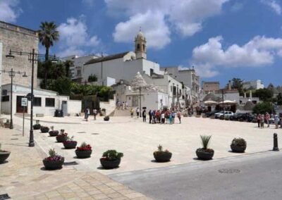 Situated in the heart of Alberobello, a UNESCO World Heritage town in the Apulia region of southern Italy, Piazza Gabriele D’Annunzio offers a unique blend of historical charm and local culture. This picturesque square is named after the celebrated Italian poet, playwright, and patriot Gabriele D’Annunzio, a towering literary and political figure of the late 19th and early 20th centuries. The piazza stands as a symbolic link between the town’s rich architectural heritage and Italy’s broader cultural history. Alberobello is world-famous for its “trulli”, traditional dry-stone huts with conical roofs, built without mortar and characterized by their whitewashed walls and stone-tiled domes. These structures create an almost fairy-tale like setting, and Piazza Gabriele D’Annunzio is ideally situated as a point of entry into this magical atmosphere