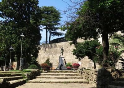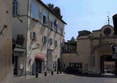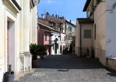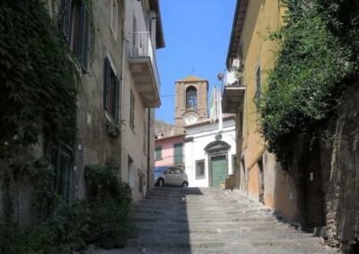 Nestled at the highest point of Anguillara Sabazia’s historic centre, which itself perches above the serene expanse of Lake Bracciano, Piazza della Collegiata is a captivating public space dominated by the majestic Chiesa di Santa Maria Assunta, the town’s Collegiate Church. This elevated piazza, angled toward the lake, provides panoramic views and a striking backdrop for the church façade. The setting, sculpted by volcanic tuff, offers a tranquil yet elevated atmosphere: the piazza is not just a thoroughfare, but a symbolic corner of town where civic identity, religious devotion, and scenic beauty converge. Although references to a Marian place of worship in Anguillara date back to 1489, the current structure emerged following a comprehensive Baroque-style rebuilding between 1765 and 1794, led initially by architect Nicola Lorenzo Piccioni and later by Giuseppe Scatuzzi.
