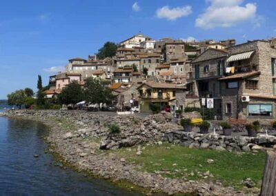 The origins of Anguillara Sabazia date back to ancient times. Archaeological findings suggest the area was inhabited during the Roman era, when villas and settlements lined the lake’s shores. The town’s name is thought to derive from the Latin word anguilla, meaning eel, a reference to the abundance of eels in the lake. During the Middle Ages, Anguillara became a fortified village, enclosed by walls that protected it from invasions. Many of these medieval structures still define the town’s skyline, with narrow winding streets, stone houses, and ancient gates preserving its historic character.