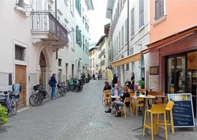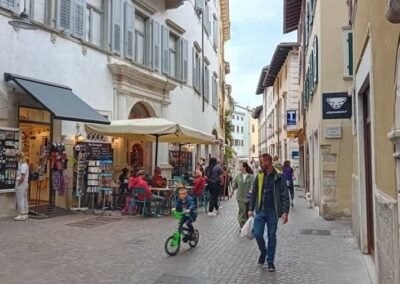 The historic centre of Arco is a charming network of narrow streets, elegant arcades, and pastel-coloured buildings that reflect its noble past. At the heart of the old town lies Piazza III Novembre, framed by Renaissance palaces such as Palazzo Marchetti, with its frescoed façade and stone balconies. The Church of Santa Maria Assunta, with its Baroque interior, stands nearby as a reminder of the town’s deep religious traditions. Walking through Arco feels like stepping into a tranquil blend of history and nature, where every corner invites reflection and discovery.