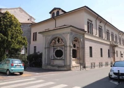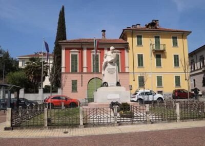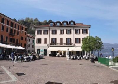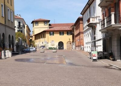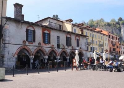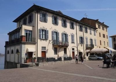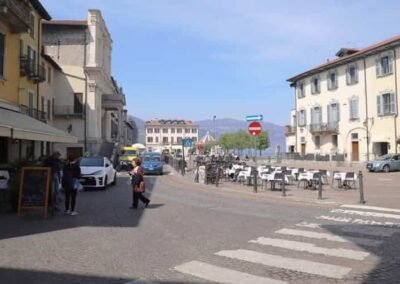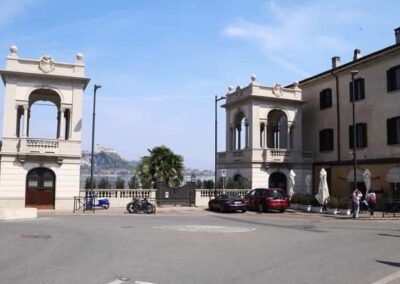 Piazza del Popolo in Arona, set beautifully on the shores of Lake Maggiore, is the historical and social heart of this lakeside town in Piedmont. With views across the water toward the Rocca of Angera, the square is not only a scenic focal point but also a living tapestry of Arona’s medieval roots and civic evolution. Historically, the square, once known as Piazza Maggiore, served as the bustling medieval centre of Arona. Every Tuesday, among the arcade-supported porticoes of the harbour district, a lively market drew merchants and visitors from around the lake and neighbouring villages, facilitating trade, barter, and social exchange. Adjacent stood the Porto Militare or “del soccorso,” built in 1447 under Vitaliano Borromeo to protect the Rocca. A partially covered stone stairway known as the “Strada Segreta” climbed the cliff toward the fortress, a concealed route still partly visible today.