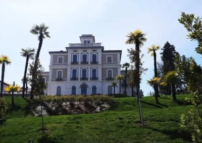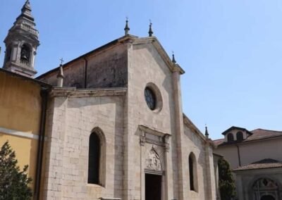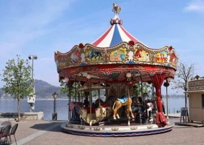 The history of Arona stretches back to ancient times, with roots in the Roman era. Over the centuries, it grew into an important strategic and commercial centre thanks to its position along Lake Maggiore and its proximity to Milan and Switzerland. The city’s development was closely linked to the influential Borromeo family, whose presence shaped much of Arona’s cultural and architectural heritage. Among the most striking landmarks associated with this legacy is the colossal statue of San Carlo Borromeo, affectionately known as the “Sancarlone.” Standing more than thirty meters tall, this monumental bronze figure was completed in the seventeenth century and remains one of the tallest statues in the world. Visitors can even climb inside to enjoy panoramic views of the lake and surrounding landscape.
