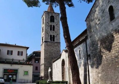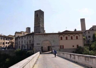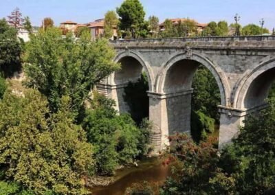 The Ponte Romano, or Roman Bridge, in Ascoli Piceno is one of the city’s most remarkable ancient landmarks and a striking testament to Roman engineering. Spanning the Tronto River, the bridge has stood for more than two thousand years, connecting the historic heart of Ascoli with the surrounding countryside. Built from the city’s characteristic travertine stone, it combines strength and elegance in its design, with graceful arches that have endured centuries of floods and use. According to local legend, the bridge was built by a craftsman named Cecco d’Ascoli with the help of the devil himself, giving it the nickname “Ponte di Cecco.” Despite the myth, its true origins reflect the exceptional skill of Roman architects who created lasting infrastructure across the empire. Today, the Ponte Romano remains a beautiful and evocative reminder of Ascoli Piceno’s long and fascinating past.