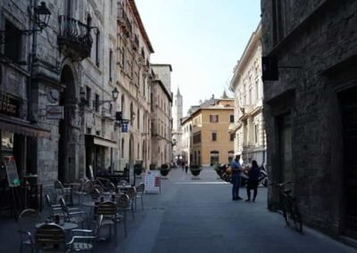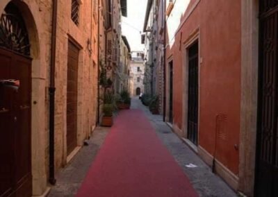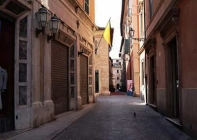 The Corso Giuseppe Mazzini in Ascoli Piceno is one of the city’s most emblematic boulevards, an elegant artery that runs through the heart of the medieval and Renaissance centre. Steeped in history dating back to Roman times and lined with architectural treasures from multiple eras, the Corso offers a vivid introduction to Ascoli Piceno’s rich cultural identity. Beginning as a principal Roman decumanus (east–west main street), Corso Mazzini was unearthed during archaeological excavations in 2013. These revealed multiple strata beneath the modern surface—including Roman paving stones with chariot wheel grooves, trodden for centuries, and even deeper, earlier roadbeds and walls in opus quasi reticulatum construction.