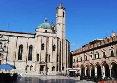 The heart of Ascoli Piceno is its magnificent Piazza del Popolo, often considered one of the most beautiful squares in Italy. This elegant plaza, surrounded by Renaissance arcades and historic buildings, serves as a gathering place for locals and visitors alike. Dominating the square is the Palazzo dei Capitani del Popolo, a stately 13th-century palace that once housed the city’s government and still stands as a symbol of civic pride. Nearby, the Church of San Francesco adds a touch of Gothic grandeur, with its impressive façade and peaceful cloisters.
