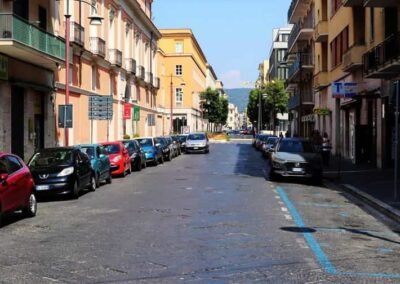 The walk starts in Via S. Carlo – Via Vincenzo Crispo – Via S. Carlo – Via Michele Ferrara – Via S. Carlo – Chiesa di Montevergine, Via S. Carlo – Viale Medaglie D’Oro – Via S. Carlo – Via Generale Alberto Pollio – Piazza Luigi Vanvitelli – Via Giuseppe Mazzini – Via del Redentore – Via Giuseppe Mazzini – Corso Trieste – Sacrario dei Caduti dell’Aeronautica, Piazza Antonio Gramsci – Piazza Carlo Terzo – Viale Giulio Douhet – Piazza Carlo III – Piazza Garibaldi Giuseppe – Via Giuseppe Verdi