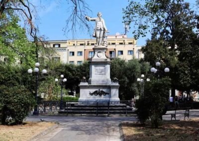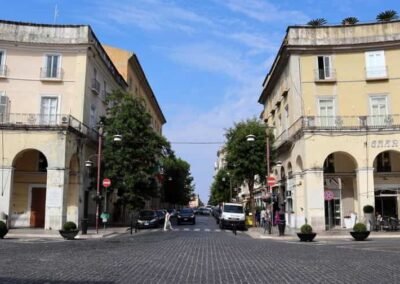 Piazza Dante, originally known as Piazzetta ellittica del Trivio, was created in the early 19th century as part of the new east–west axis extending from the Royal Palace’s gardens. Following Italy’s unification, it was renamed “Piazza Margherita*“ in honour of the Queen and swiftly became Caserta’s “salotto buono”, a refined gathering place for civic life. The square is defined by its elegant elliptical shape and four identical porticoed buildings, hence its earlier name, Piazza dei Quattro Canti. These harmonious facades house the historic Circolo Nazionale and Circolo Sociale, key social hubs since the early 20th century, as well as the iconic Caffè Margherita, still operating under its original name.