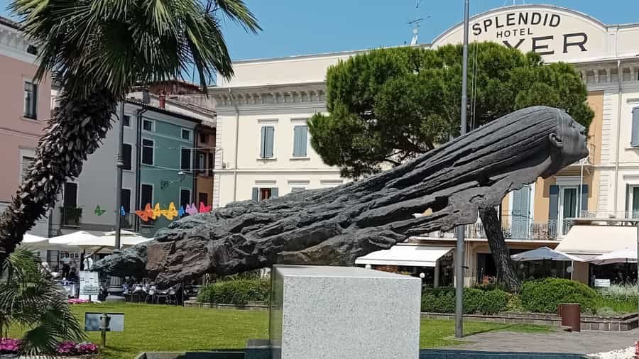 The Lungolago Cesare Battisti is Desenzano del Garda’s iconic lakeside promenade, stretching through the historic centre along Lake Garda’s southwestern shore. Once characterised by its vintage charm and the modest spiaggia Feltrinelli, this waterfront path has recently undergone one of the most ambitious urban renewal projects in the town’s modern history. A striking feature is the sculptural artwork Inside Two Sails” (or in Italian, Dentro le vele) by local artist Walter Xausa. This six‑metre metal installation evokes Lake Garda’s nautical heritage and sits prominently on the refreshed lakeside terrace.