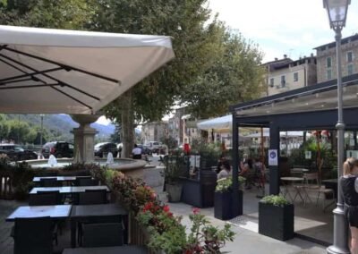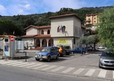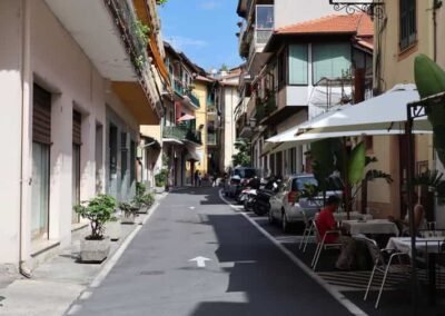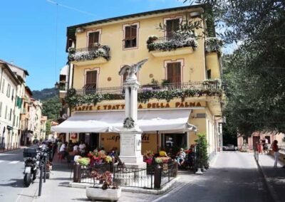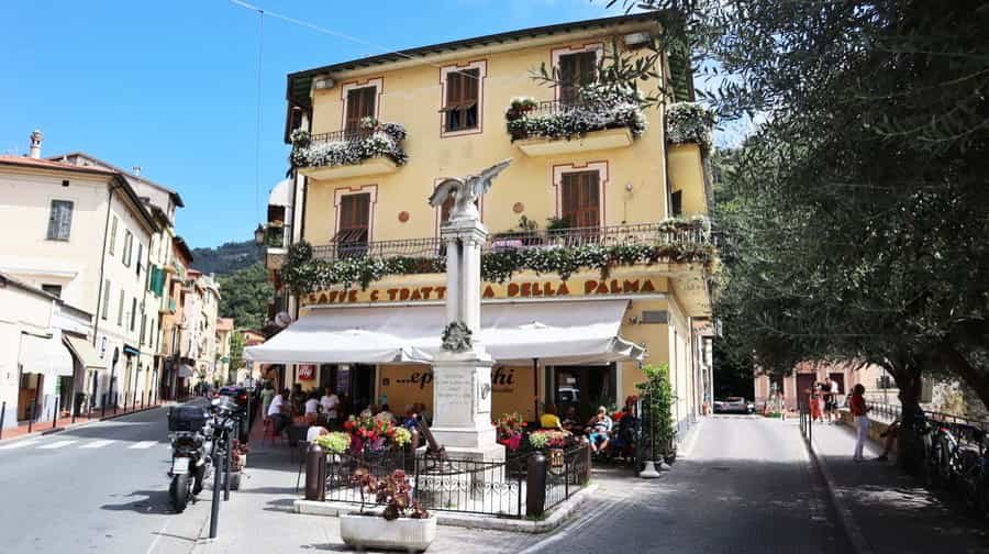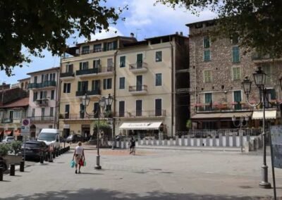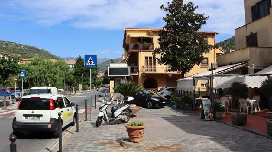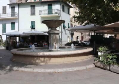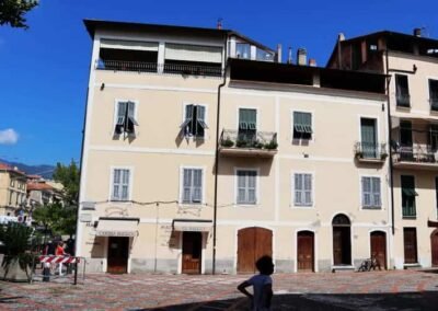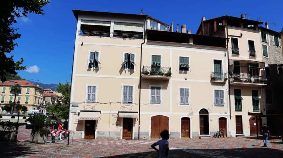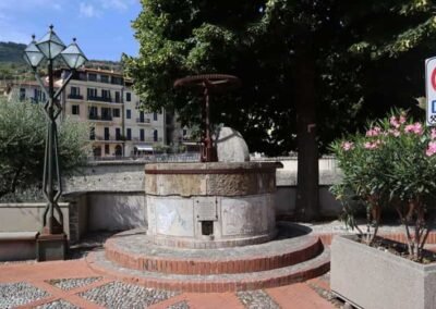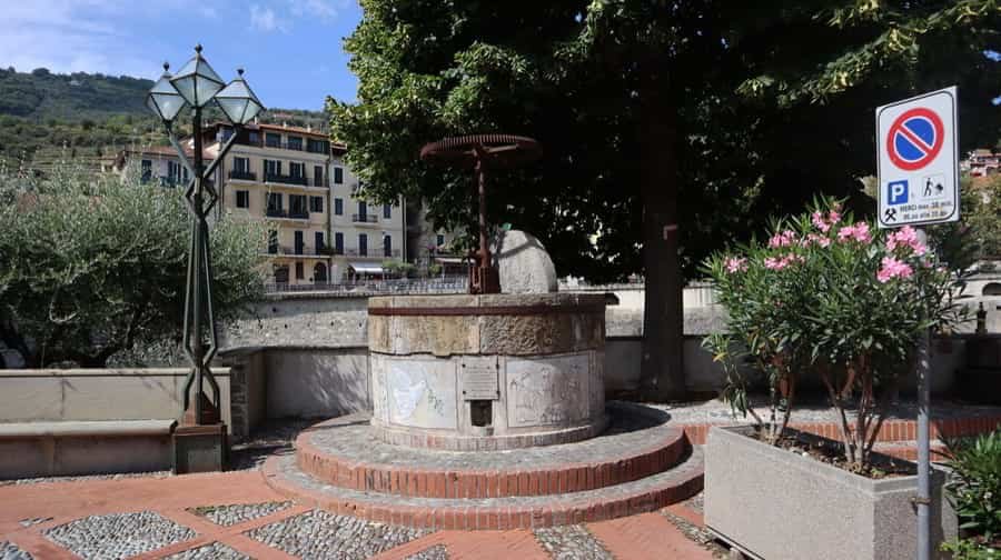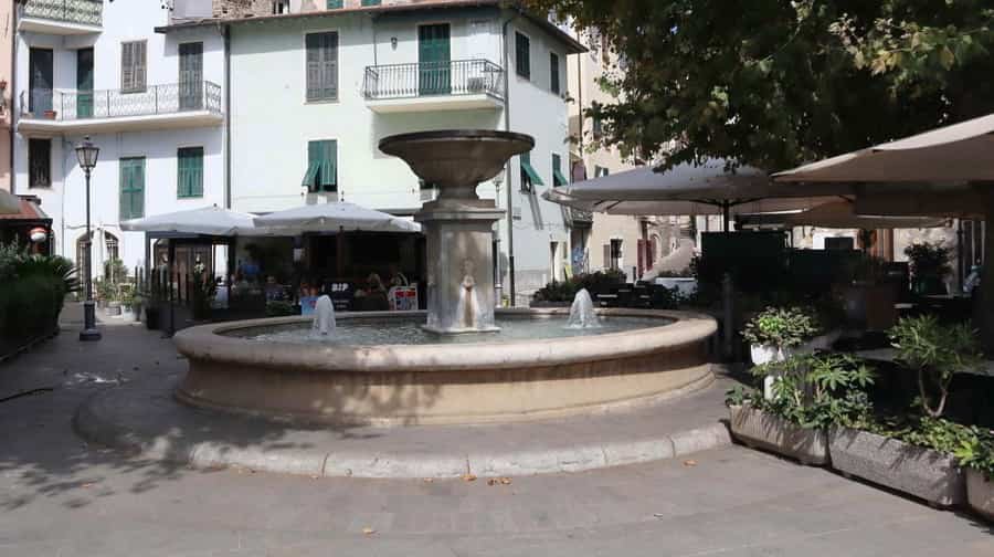 Located in the lower, more open part of Dolceacqua, contrasting with the densely built medieval “Tera” above, Piazza Giuseppe Garibaldi acts as the village’s lively gathering place, where residents and visitors naturally converge. It provides a welcoming pause before one ascends through the narrow stone alleys toward the historic castle above. Anchoring the square is a classic stone fountain, its modest elegance blending seamlessly with the pastel-hued walls of nearby buildings. The setting exudes the gentle rhythm of daily Ligurian life, framed by quaint cafés and local businesses cradled beneath colonnades, and served by a few restaurants offering laid-back charm