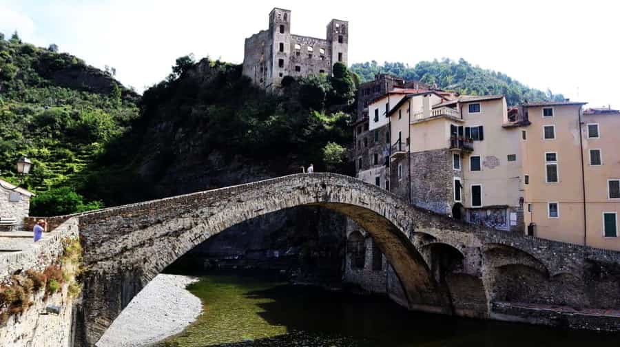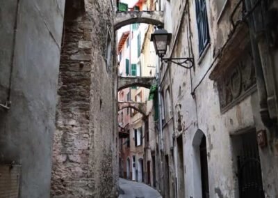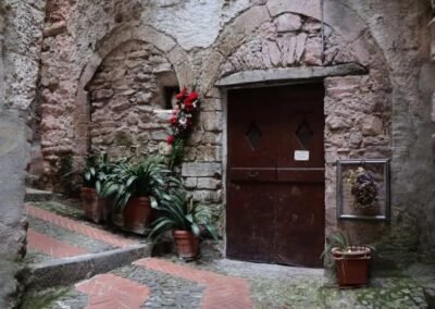 The heart of Dolceacqua lies in its perfectly preserved old town, known as Terra, a maze of narrow stone alleyways, vaulted passages, and steep stairways that seem to lead directly into history. Above the village rises the majestic Doria Castle, an ancient fortress that once guarded the valley and now offers breath-taking panoramic views over the roofs of the town and the rolling hills beyond. The castle, built in the thirteenth century and expanded over time, stands as a proud symbol of Dolceacqua’s medieval past and the long rule of the Doria family, who shaped the destiny of this land for centuries.