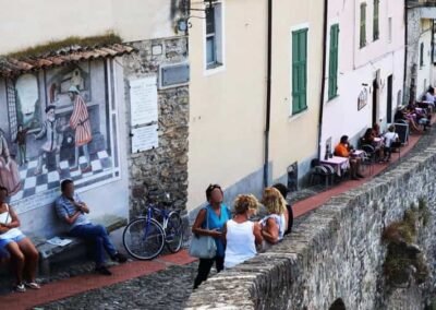 Dolceacqua is also famous for its Rossese di Dolceacqua wine, a delicate and aromatic red that reflects the character of the land—sunny, rich, and enduring. Alongside wine, the village offers the traditional flavours of Ligurian cuisine: olive oil, fresh herbs, homemade pasta, and sweet pastries like pansarole. Festivals, art exhibitions, and music events bring life to its squares throughout the year, while its surrounding hills invite walks, bike rides, and peaceful moments in nature. Dolceacqua is not only a destination but an experience of authenticity and harmony, a perfect blend of history, culture, and the gentle rhythm of Italian village life.