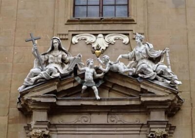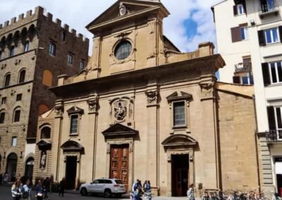 The Chiesa di Santa Maria del Carmine, located in the lively Oltrarno district of Florence, is one of the city’s most significant churches, renowned above all for housing the celebrated Brancacci Chapel, a cornerstone of Renaissance art. Though its plain exterior may not draw immediate attention, within its walls lies a treasure that has profoundly shaped the course of Western painting. The church was founded in 1268 by the Carmelite Order, who established a large convent complex on the site. Over the following centuries, the building grew in importance, enriched by chapels commissioned by prominent Florentine families. The most famous of these is the Brancacci Chapel, begun around 1424 by Felice Brancacci and decorated with frescoes by Masaccio and Masolino da Panicale, later completed by Filippino Lippi.