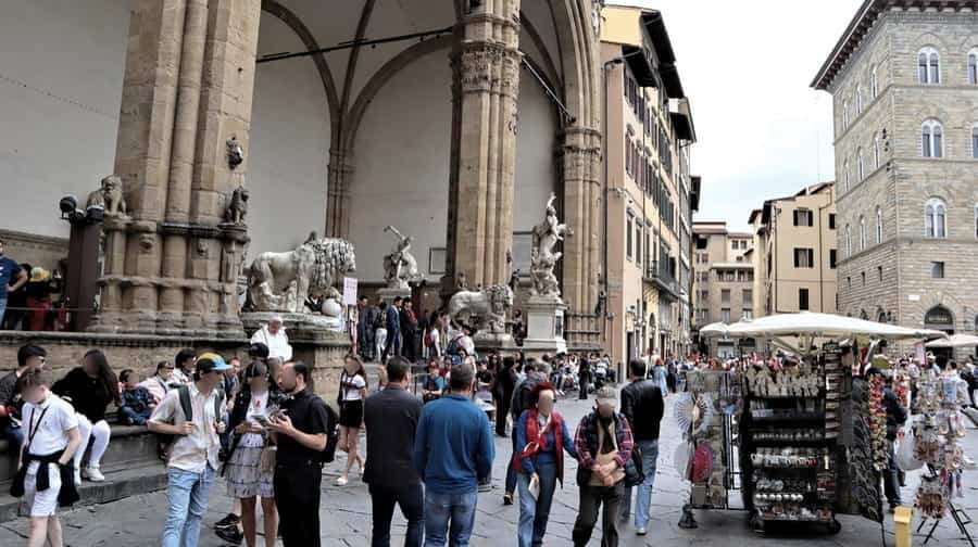 The walk starst in Borgo dei Greci – Piazza di S. Firenze – Piazza di S. Firenze, Piazza di S. Firenze – Via dei Magazzini ia Via della Condotta – Via dei Magazzini – Piazza della Signoria – Via degli Speziali – Via dei Calzaiuoli – Piazza della Repubblica – Via degli Speziali – Via dei Calzaiuoli – Piazza del Duomo