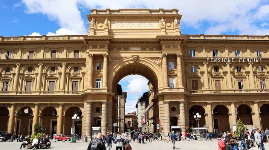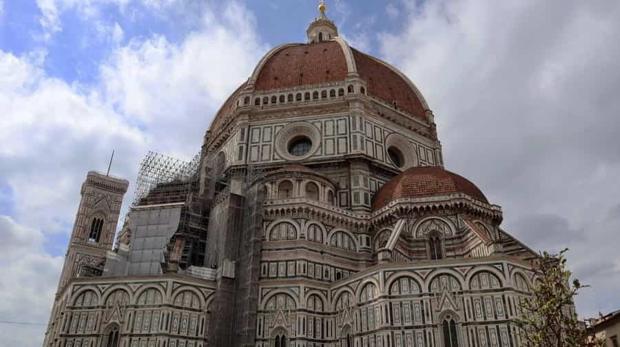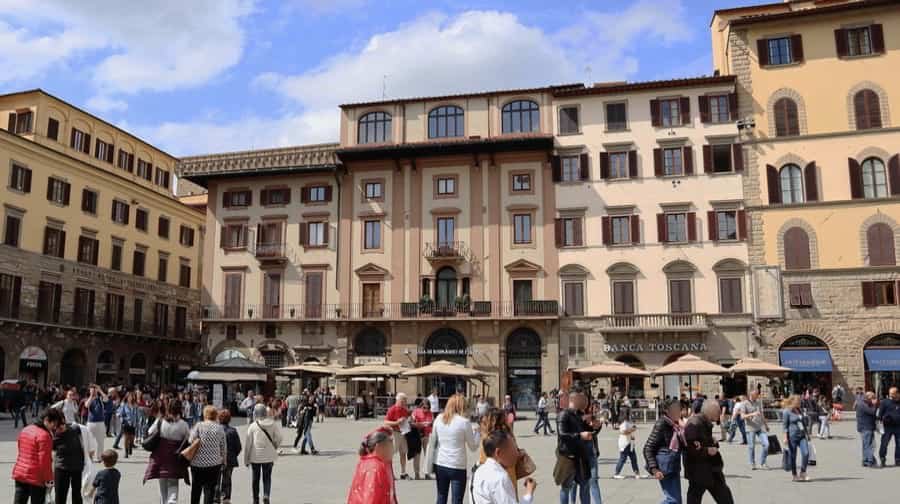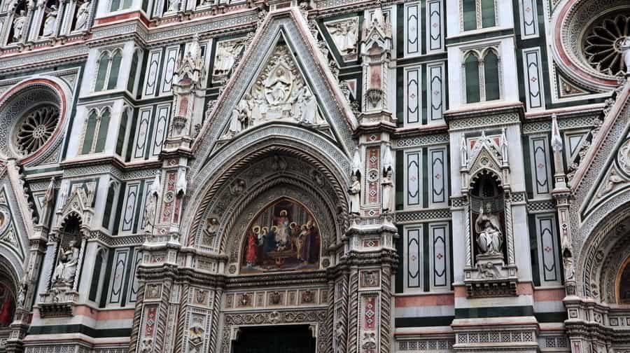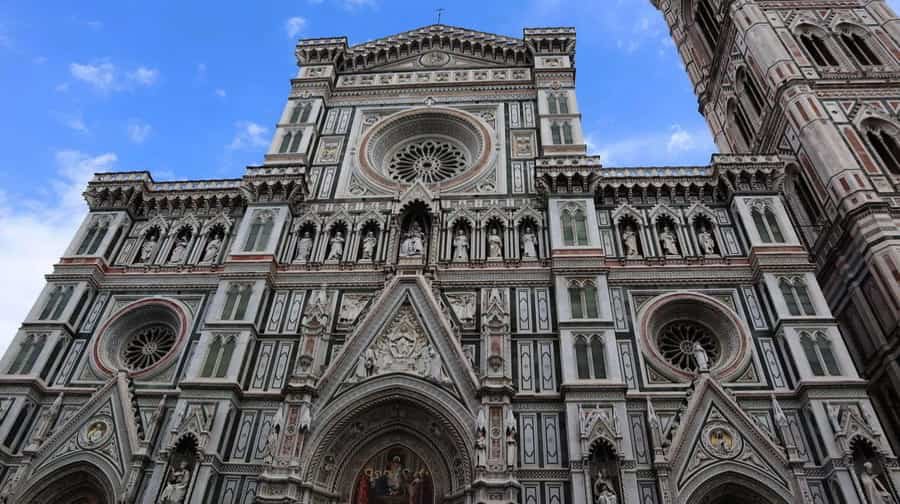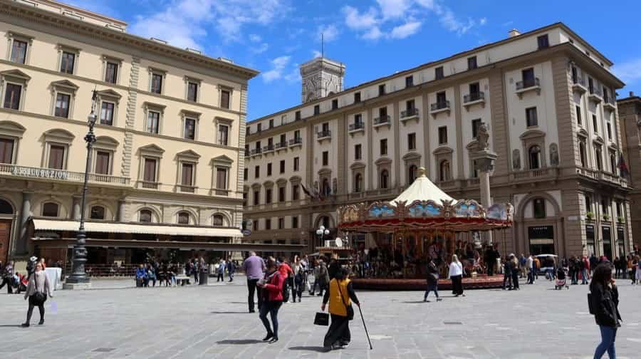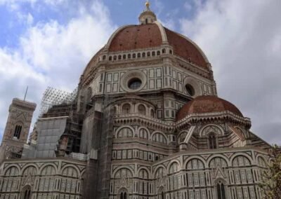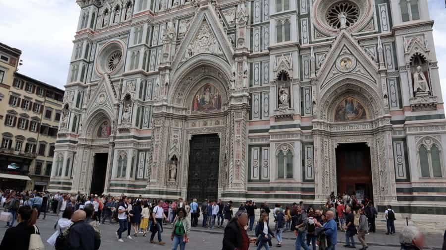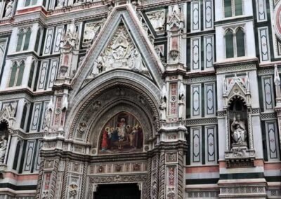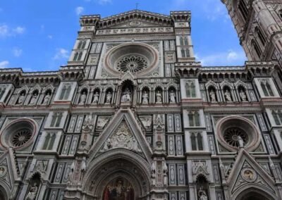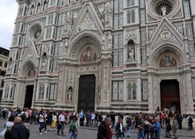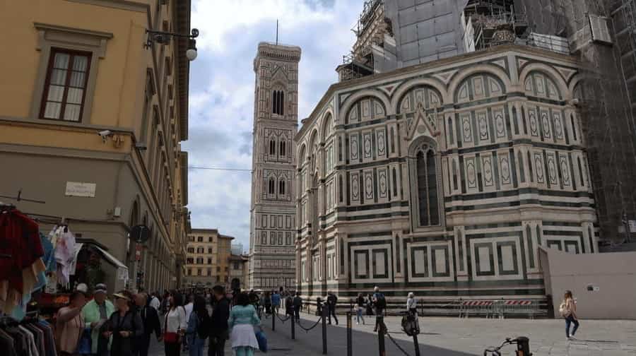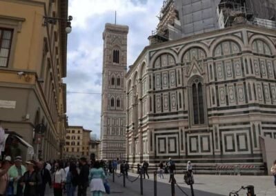 Piazza del Duomo is the monumental heart of Florence, a dazzling stage where some of the most celebrated masterpieces of Italian Gothic and Renaissance architecture stand side by side. Located in the historic centre, this square is dominated by the Cathedral of Santa Maria del Fiore, whose soaring red-tiled dome—designed by Filippo Brunelleschi, has become the city’s most recognizable symbol. Around it, the Baptistery of San Giovanni, Giotto’s Bell Tower, and the cathedral’s intricate marble façade together form one of the most harmonious and breath-taking architectural ensembles in the world. The piazza’s history stretches back to Roman times, when this area served as a central point in the ancient settlement of Florentia. The Baptistery, with its octagonal plan and richly decorated bronze doors by Andrea Pisano and Lorenzo Ghiberti, predates the cathedral and stands as one of the oldest buildings in the city, dating to between the 11th and 12th centuries.