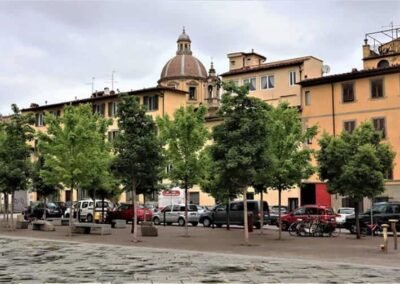 Tucked away in the vibrant Oltrarno district, the Piazza del Carmine is a spacious and atmospheric square that serves as the forecourt to one of Florence’s most important churches. the Basilica di Santa Maria del Carmine. While less crowded than the city’s more famous piazzas, it offers a rich blend of art, history, and neighbourhood life, making it a rewarding destination for those seeking an authentic Florentine experience. The square takes its name from the Carmelite convent established here in the late 13th century. Over time, the Basilica di Santa Maria del Carmine became renowned for housing the Brancacci Chapel, whose fresco cycle, begun by Masaccio and completed by Masolino and Filippino Lippi, s considered a cornerstone of Renaissance painting. These works, celebrated for their ground-breaking use of perspective and naturalism, influenced generations of artists, including Michelangelo.