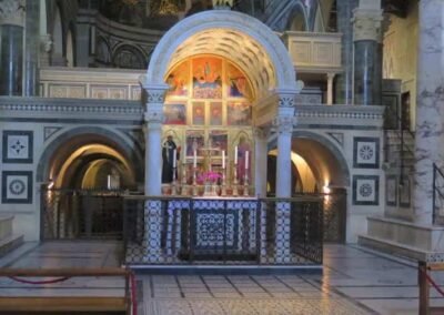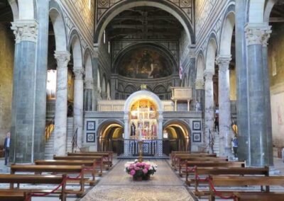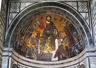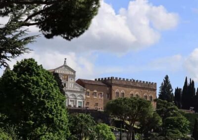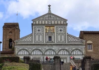 Perched high above Florence on the crest of the Monte alle Croci, the Abbazia di San Miniato al Monte is one of the city’s most beautiful and oldest religious monuments. Its striking white-and-green marble façade, shimmering in the Tuscan sunlight, dominates the skyline and offers some of the most breath-taking panoramic views over the historic centre. The abbey’s origins date back to the early 11th century, when construction began on the present basilica over a site associated with Saint Minias (San Miniato), a Christian martyr believed to have been beheaded in the 3rd century during the persecutions of Emperor Decius. According to legend, Minias picked up his severed head and walked to this hilltop, where he chose to die, making the location a place of deep spiritual significance