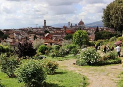 Tucked away on the slopes of Florence’s famed Oltrarno district, just below the panoramic Piazzale Michelangelo, the Giardino delle Rose (Rose Garden) is one of the city’s most enchanting and peaceful green spaces. Created in 1865 by the French architect Giuseppe Poggi, the garden was part of a wider urban redevelopment project marking Florence’s brief role as the capital of the newly unified Kingdom of Italy. Poggi envisioned a terraced oasis where locals and visitors could enjoy sweeping views of the city’s domes, towers, and red-tiled rooftops framed by the gentle hills of Tuscany. Covering about one hectare, the garden is home to over 350 varieties of roses from around the world, blooming in a dazzling array of colours and scents from late spring through early summer.