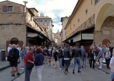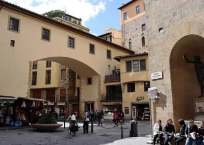 The walk starts in Lungarno Guicciardini – Piazza de’ Frescobaldi – Ponte Santa Trinita – Via de’ Tornabuoni – Piazza di Santa Trinita – Via de’ TornabuoniLungarno degli Acciaiuoli – Ponte Vecchio – Borgo S. Jacopo – Via de’ Guicciardini – Piazza di S. Felicita – Chiesa di Santa Felicita – Via de’ Guicciardini – Via de’ BardiLungarno TorrigianiGiardino Martin Lutero, Lungarno Torrigiani -Ponte alle Grazie – Via dei Benci – Borgo Santa Croce – Via Antonio Magliabechi – Piazza di Santa Croce
