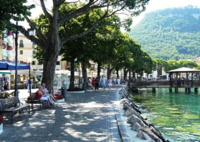 Lungolago Pincherle in Garda is one of the most charming and inviting promenades on the shores of Lake Garda, Italy’s largest and one of its most celebrated lakes. Stretching along the waterfront of the town of Garda, this scenic lakeside walk perfectly combines natural beauty, leisure, and cultural atmosphere. Its name honours Gino Pincherle, a figure remembered for his civic and cultural contributions, and by dedicating this space to him, the community acknowledges the importance of heritage while offering residents and visitors a space of relaxation and connection with the lake. The promenade is the true heart of Garda’s social life. Shaded by trees and lined with benches, cafés, and restaurants, Lungolago Pincherle is a place where both locals and tourists gather throughout the day