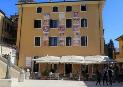 Piazzetta Calderini is one of the most charming and characteristic corners of Garda, a picturesque town on the eastern shore of Lake Garda. Nestled in the historic centre, this small square embodies the essence of Italian piazza life: intimate, lively, and steeped in atmosphere. While it may not be as grand as the town’s main streets or lakeside promenade, Piazzetta Calderini captures visitors with its human scale, cosy ambiance, and the way it reflects both the history and the social spirit of Garda. Its name recalls a local family or figure of importance, linking the square to the town’s past and preserving memory within the everyday life of the community. Architecturally, Piazzetta Calderini is a delight. Surrounded by pastel coloured houses with balconies, shutters, and flower boxes, the square feels enclosed yet welcoming, a natural gathering point sheltered from the larger flows of traffic and tourism.