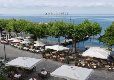 For outdoor enthusiasts, Garda offers a wide range of activities. The hills around the town are crisscrossed with hiking and biking trails, including the path up to the Rocca di Garda, where the ruins of the ancient castle provide not only a historical insight but also panoramic views of Lake Garda. The lake itself is a haven for water sports, with activities like sailing, windsurfing, and kayaking available to those eager to explore the water. Garda is rich in cultural heritage, with several churches, such as the Pieve di Santa Maria Assunta, reflecting its long history. This Romanesque church, dating back to the 12th century, is a peaceful spot where visitors can admire frescoes and a serene atmosphere. The town is also a centre of gastronomic delights, with local cuisine that celebrates the bounty of the lake and the fertile surrounding lands. Fresh fish from Lake Garda, such as trout, pike, and perch, are staples of the local diet, often paired with regional wines like the renowned Bardolino and Lugana. Olive oil is another prized product, as the mild climate around Garda supports olive cultivation. Visitors can sample these fresh, local ingredients at the many trattorias and restaurants scattered throughout the town. Garda, with its stunning lakeside location, historical significance, and relaxed Mediterranean atmosphere, is a captivating destination for travellers looking to experience the beauty of northern Italy. Whether you’re drawn by its tranquil waters, its rich cultural past, or its outdoor adventures, Garda offers something for every kind of visitor. Its proximity to Verona and Venice also makes it an excellent base for exploring more of Italy’s Veneto region, while still offering the charm and peacefulness of a lakeside retreat.