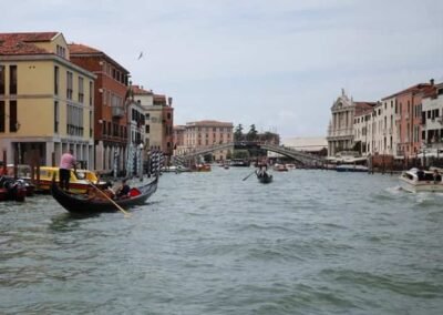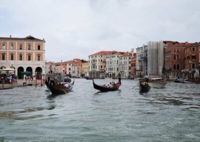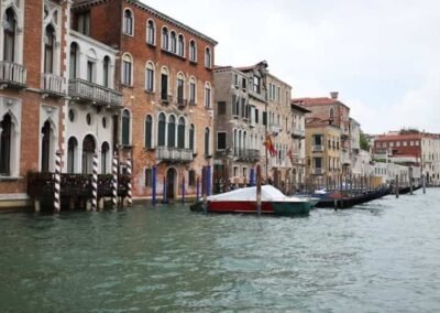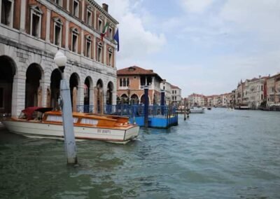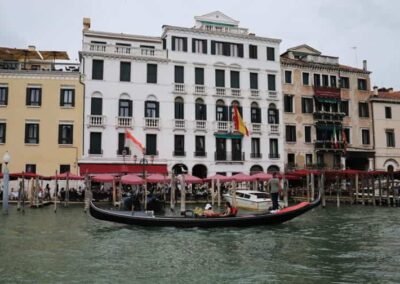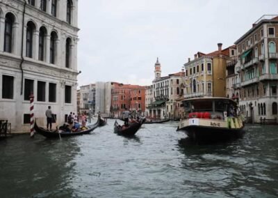 The Grand Canal serves as Venice’s primary transportation route, with no roads or cars in this part of the city. Venetians and tourists alike travel along the canal using vaporetti (water buses), water taxis, and of course, the iconic gondolas. Gondolas have been a symbol of Venice for centuries, and a gondola ride along the Grand Canal is one of the most quintessential Venetian experiences. The slow, graceful movement of the gondola allows passengers to take in the beauty of the surrounding palaces and bridges from the water, offering a unique perspective of Venice. The Grand Canal has long been a source of inspiration for artists, writers, and musicians. It has been immortalized in countless paintings by Venetian masters such as Canaletto, Guardi, and Turner. Even today, the canal remains one of the most photographed and painted locations in the world, its beauty and grandeur continuing to capture the imagination of all who visit. The Grand Canal is the lifeblood of Venice, a symbol of the city’s historical importance, cultural richness, and architectural splendour. Whether you’re gliding along its waters in a gondola, crossing one of its historic bridges, or admiring the centuries-old palaces that line its banks, the Grand Canal offers an unforgettable glimpse into Venice’s past and present. It remains a living testament to the city’s enduring charm and resilience.