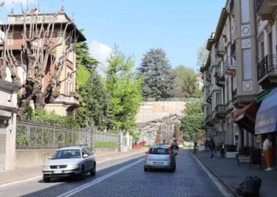 The walk starts in – Via Guglielmo Jervis – Corso Costantino Nigra – Via delle Rocchette – Via Gozzano – Chiesa San Grato in Borghetto, Via Gozzano – Via Gozzano – Via delle Rocchette – Piazza Gioberti