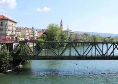 One of the most colourful and unique aspects of Ivrea’s cultural life is its famous Battle of the Oranges, a key part of the town’s annual Carnival celebrations. This lively and historic festival, which takes place in February, is said to commemorate a medieval rebellion against a local tyrant. During the festival, participants divide into teams and engage in a massive, friendly orange-throwing battle that fills the town’s streets with energy, excitement, and the vibrant colours of thousands of oranges. Surrounded by the scenic beauty of the Piedmontese Alps, Ivrea is also a gateway to outdoor activities such as hiking, cycling, and skiing. The town is located near several natural parks and lakes, offering ample opportunities for nature lovers to explore the surrounding landscape. Ivrea is a town that offers a rich tapestry of history, culture, and innovation. From its Roman origins to its industrial legacy with Olivetti, and its lively traditions like the Battle of the Oranges, Ivrea provides visitors with a unique and enriching experience. Whether exploring its architectural landmarks, learning about its industrial heritage, or simply enjoying its scenic beauty, Ivrea stands as a testament to Italy’s ability to blend the past with the present in a vibrant and engaging way.