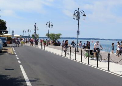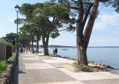 The Lungolago Marconi in Lazise is one of the most charming and popular promenades on the eastern shore of Lake Garda, offering a perfect combination of scenic beauty, leisure, and cultural atmosphere. Lazise itself is one of the most picturesque towns along the lake, rich in history and medieval character, and the Lungolago Marconi serves as both its elegant waterfront and its most frequented gathering place. Stretching along the lakeside, the promenade welcomes visitors with sweeping views of the calm waters of Lake Garda, framed by mountains in the distance and softened by the colours of the surrounding landscape. The promenade takes its name from Guglielmo Marconi, the celebrated Italian inventor and Nobel laureate known for his pioneering work in wireless telegraphy.
