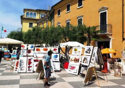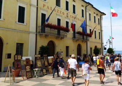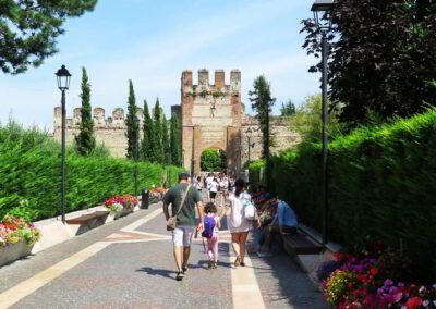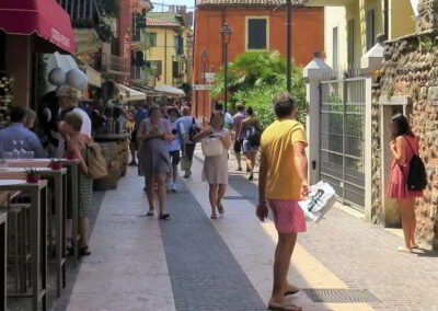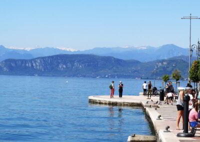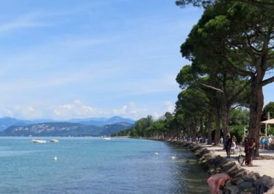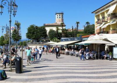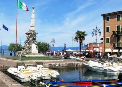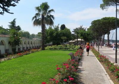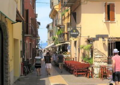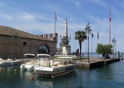 Visitors to Lazise can stroll through its narrow, cobbled streets, which are lined with colourful houses, boutique shops, and charming cafés. The Piazza Vittorio Emanuele, the town’s main square, is a lively gathering place where locals and tourists alike come to enjoy the vibrant atmosphere. The square features a beautiful fountain and is surrounded by historic buildings with arched colonnades. It’s an ideal spot to sit and enjoy a coffee or a gelato while soaking in the town’s ambiance. Lazise’s location on the shores of Lake Garda makes it a perfect destination for those who love the outdoors. The town boasts a long lakeside promenade that offers stunning views of the lake and the surrounding hills. Visitors can take leisurely walks along the promenade, rent bicycles, or simply relax by the water’s edge. Lake Garda is also popular for water sports, including sailing, windsurfing, and swimming, and Lazise’s marina provides opportunities for boat rentals and excursions.