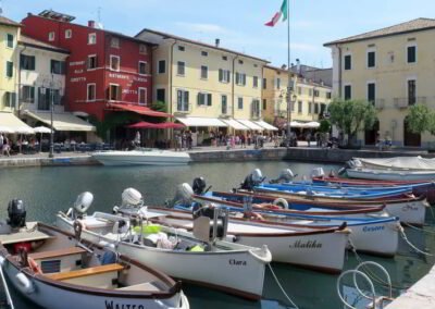 Lazise, a picturesque town on the south-eastern shore of Lake Garda in northern Italy, is a destination rich in history, charm, and natural beauty. Located in the province of Verona, in the Veneto region, Lazise is renowned for its well-preserved medieval architecture, tranquil lakeside setting, and vibrant atmosphere. As one of the oldest settlements on Lake Garda, the town offers visitors a delightful combination of historical exploration, outdoor activities, and relaxation, making it a perfect getaway for travellers seeking an authentic Italian experience. Lazise’s history dates back to Roman times, and the town’s name is believed to come from the Latin word “lacus,” meaning lake, highlighting its longstanding connection to Lake Garda. Throughout the centuries, Lazise has played an important role as a strategic and commercial hub, especially during the Middle Ages. In fact, Lazise holds the distinction of being one of the first towns in Italy to receive municipal rights, granted by the Holy Roman Emperor Otto II in 983 AD, giving it a special place in Italian history. One of the most striking features of Lazise is its beautifully preserved medieval town centre, which is enclosed by ancient walls and guarded by imposing gates. The walls, built in the 14th century by the Scaliger family, rulers of Verona, encircle the old town and lead to the impressive Castello Scaligero. This castle, also constructed by the Scaligers, is a dominant feature of Lazise’s skyline. Although the castle is privately owned and not open to the public, its imposing towers and walls offer a glimpse into the town’s medieval past.