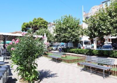 The walk starts in Via S. Michele – Parco Villa Comunale, Viale Rimembranza – Viale Rimembranza – Piazza Guglielmo Marconi – Via Tre Segni – walk back to Piazza Guglielmo Marconi – Municipal Market Hall of Santa Chiara, Piazza Santa Chiara – Via Sportello – Via Tripoli – Via Santa Maria – Chiesa Santa Maria Maggiore, Via Santa Maria – Via Santa Maria – Piazza del Tomolo – Via Catena – Porta Catena, Loggia Amblingh