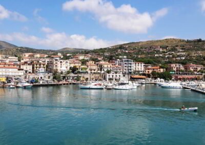 Marina di Camerota, located in the Campania region of southern Italy, is a picturesque coastal town nestled in the Cilento and Vallo di Diano National Park. Known for its stunning natural beauty and charming atmosphere, Marina di Camerota is a popular destination for both domestic and international tourists seeking a serene retreat along the Tyrrhenian Sea. Marina di Camerota is situated along the Tyrrhenian coast, part of the Cilento peninsula, which boasts a rugged and varied landscape. The town is surrounded by dramatic cliffs, lush Mediterranean vegetation, and pristine beaches, offering breath-taking views of the azure sea. The coastline features a mix of sandy stretches and rocky coves, creating a diverse and appealing environment for beachgoers and nature enthusiasts. One of the highlights of Marina di Camerota is its beautiful beaches. The town is renowned for its crystal-clear waters and picturesque sandy bays. Popular beaches include Cala Monte Lico, a secluded cove with turquoise waters and fine sand, and Spiaggia Lentiscelle, known for its serene ambiance and excellent swimming conditions. The beaches are well-maintained and provide a perfect setting for sunbathing, swimming, and water sports.