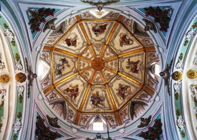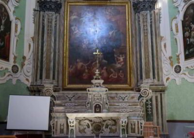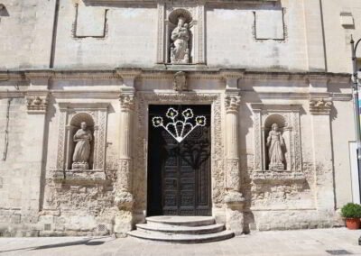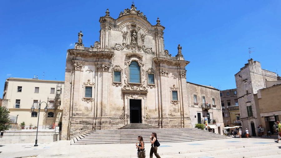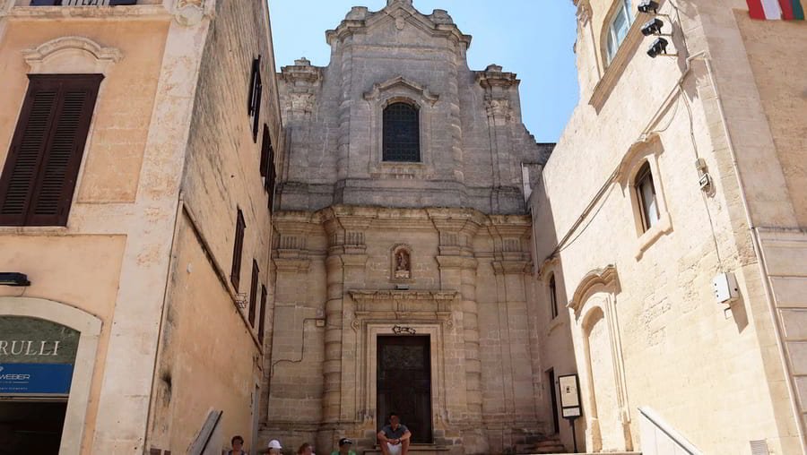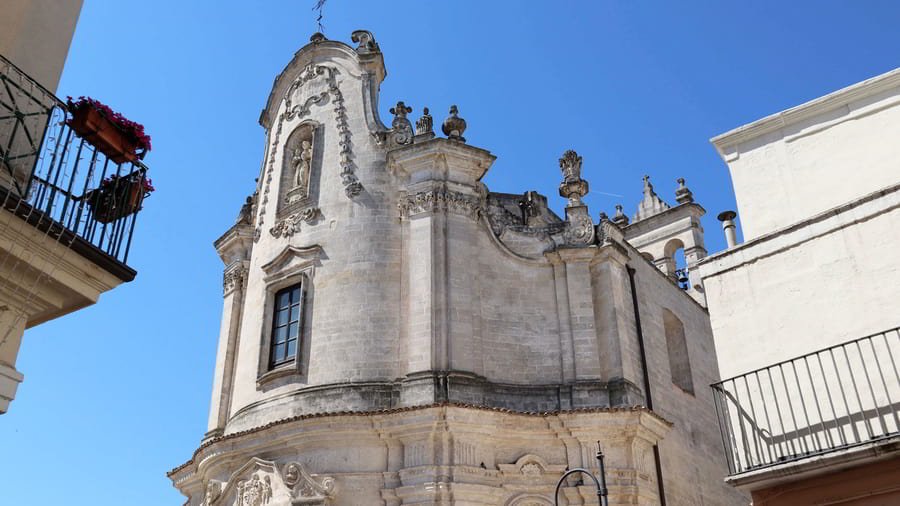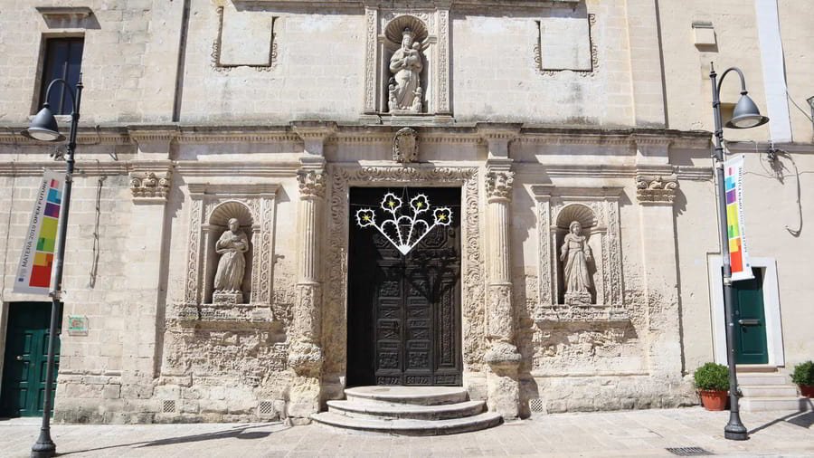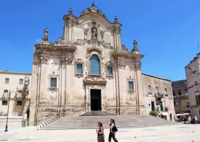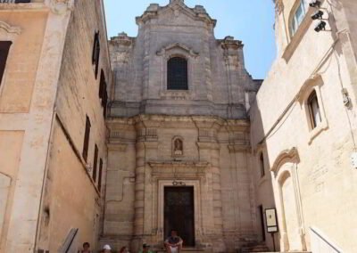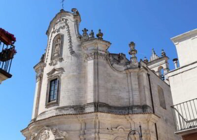 The Chiesa del Purgatorio, located on Via Domenico Ridola in Matera, is a compelling example of the city’s rich religious and architectural history. This church, dedicated to the Souls in Purgatory, stands out for its distinctive baroque style, which contrasts sharply with the predominantly Romanesque and Byzantine architecture of Matera’s cave churches. Constructed in the 18th century, the Chiesa del Purgatorio features a striking facade adorned with intricate stone carvings and elaborate decorations. The façade is characterized by its ornate details, including decorative columns, statues, and a grand entrance that reflects the opulence of the Baroque period. The building’s design emphasizes verticality and drama, typical of the Baroque style, and serves as a visual centrepiece in its urban context. Inside, the church is equally impressive, with a richly decorated interior that includes ornate altars and an elaborate ceiling. The interior’s decorative elements, including frescoes and stucco work, contribute to the church’s serene and contemplative atmosphere.