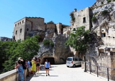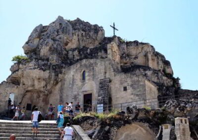 Matera is also a hub for cultural and artistic events. The city hosts a variety of festivals, exhibitions, and performances throughout the year, celebrating its rich traditions and contemporary creativity. The annual Matera Film Festival and other cultural events attract artists, filmmakers, and performers from around the world. Visitors to Matera can explore the winding streets of the Sassi districts, visit ancient churches, and enjoy panoramic views from various vantage points around the city. The Casa Grotta di Vico Solitario, a traditional cave dwelling, provides insight into the daily life of past residents. Additionally, the MUSMA (Museum of Contemporary Sculpture Matera) offers a unique fusion of contemporary art and historical context. The city’s cuisine is another highlight, with local dishes featuring ingredients and recipes that have been passed down through generations. Traditional specialties such as bread, pasta, and local wines offer a taste of Matera’s rich culinary heritage. Matera stands out as a city of extraordinary historical and cultural significance. Its ancient cave dwellings, rock-hewn churches, and vibrant contemporary scene make it a unique destination for travellers seeking to explore one of Italy’s most remarkable and historically rich cities. With its blend of ancient heritage and modern innovation, Matera offers an unforgettable experience that bridges the past and the present.