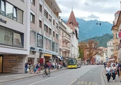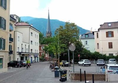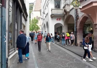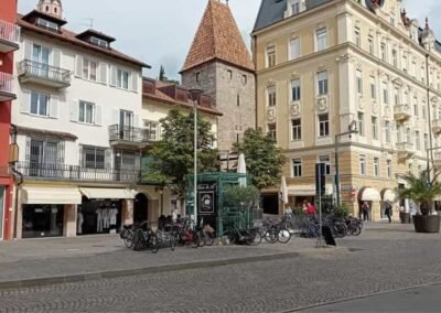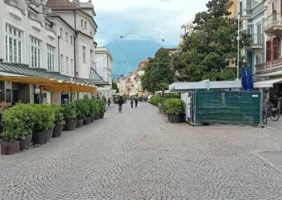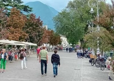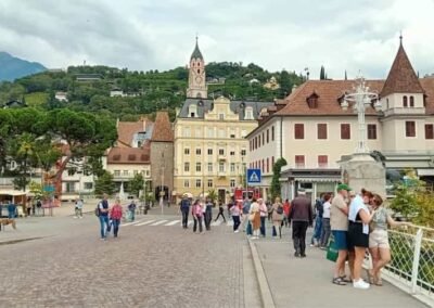 Via Roma in Merano, is one of the town’s main streets, known for its vibrant mix of history, culture, and modern charm. Stretching from the heart of Merano toward the surrounding neighbourhoods, it serves as a lively connection between the old town and newer areas. The street is lined with elegant shops, cozy cafés, and beautifully preserved buildings that reflect Merano’s blend of Alpine and Mediterranean influences. Strolling along Via Roma offers a true taste of local life, where residents, visitors, and travellers meet to enjoy shopping, dining, or simply the relaxed atmosphere. The nearby bridges and tree-lined avenues enhance its appeal, offering lovely views toward the mountains and the Passirio River. Both dynamic and welcoming.
