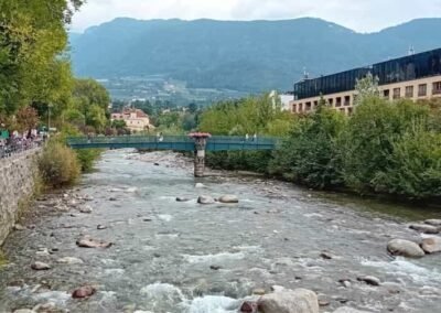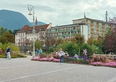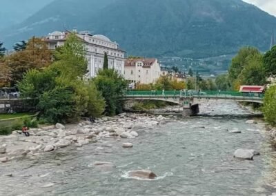 The Passeggiata Lungo Passirio in Merano, is one of the town’s most charming and scenic promenades, stretching gracefully along the banks of the Passirio River. Lined with palm trees, flowers, and elegant Art Nouveau buildings, it offers a perfect blend of natural beauty and refined atmosphere. Locals and visitors alike enjoy leisurely walks along its well-kept paths, where the sound of the flowing river and the backdrop of the surrounding mountains create a serene and picturesque setting. Along the route, cafés, boutiques, and historic landmarks add to its lively yet relaxing charm. The promenade connects key points of interest in Merano, including the Kurhaus and the city center, making it ideal for both sightseeing and quiet reflection.