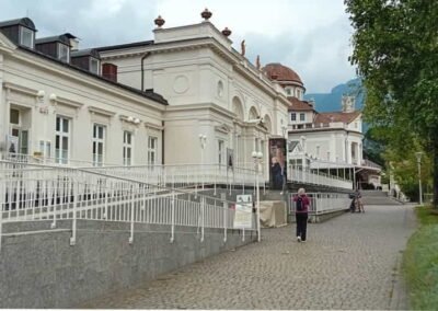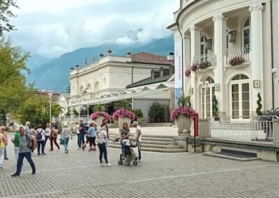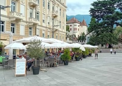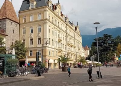 Corso della Libertà in Merano, is one of the town’s most elegant and vibrant streets, reflecting the charm and sophistication that define this Alpine spa destination. Stretching through the heart of Merano, the avenue is lined with Art Nouveau and Belle Époque buildings, stylish boutiques, inviting cafés, and grand hotels that speak to the town’s rich cultural history. As one of Merano’s main promenades, Corso della Libertà offers a perfect place for a leisurely stroll, blending local life with a refined cosmopolitan atmosphere. Visitors can admire architectural details, enjoy outdoor terraces, or simply take in the views of the surrounding mountains. The street connects key landmarks, including the Kurhaus and Piazza della Rena, making it a central part of any visit to Merano. Elegant yet relaxed.