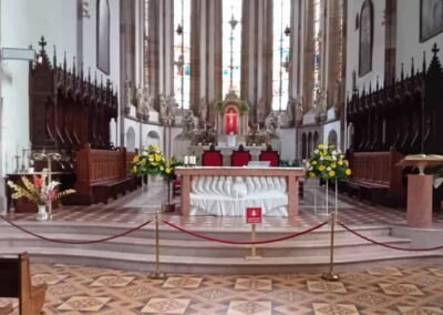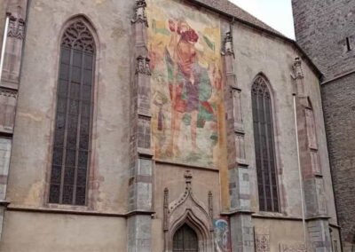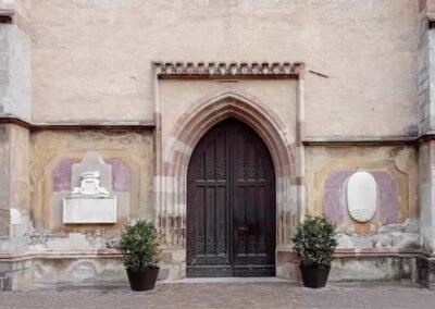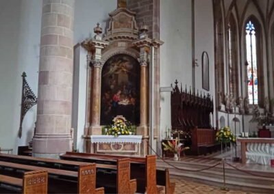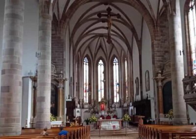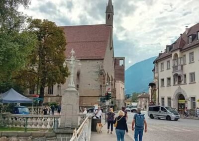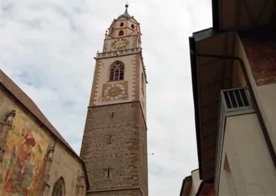 The Duomo di San Nicolò, located on Vicolo Passiria in Merano (BZ), Italy, is the town’s main parish church and one of its most significant historical landmarks. Dedicated to Saint Nicholas, the patron saint of merchants and travellers, the church stands as a beautiful example of Gothic architecture dating back to the 14th and 15th centuries. Its striking bell tower, elegant pointed arches, and finely crafted stained-glass windows make it a focal point of Merano’s old town skyline. Inside, visitors can admire intricate frescoes, detailed altars, and artistic treasures that reflect centuries of faith and devotion. The Duomo remains an active place of worship, hosting regular services and community events that bring together locals and visitors alike. Surrounded by charming streets and mountain views, the Duomo di San Nicolò offers both spiritual inspiration and a glimpse into Merano’s rich cultural and architectural heritage.