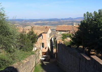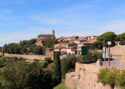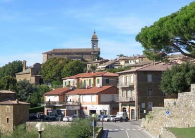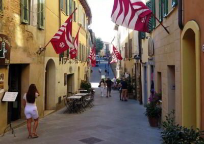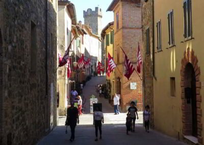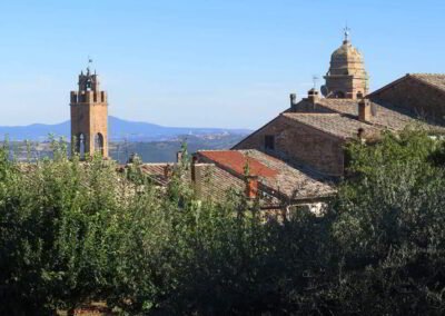 Montalcino is perhaps most famous for its wine, particularly the prestigious Brunello di Montalcino. This wine, made exclusively from Sangiovese grapes grown in the region, is one of Italy’s most revered and sought-after wines. The unique terroir of Montalcino, characterized by its warm climate and diverse soil types, creates ideal conditions for producing high-quality wines with a distinct character. The tradition of winemaking in Montalcino dates back centuries, but it was in the 19th century that Brunello di Montalcino began to gain prominence. Today, the town is home to numerous wineries, ranging from small family-run estates to larger, internationally recognized producers. Visitors to Montalcino can explore these wineries, participate in wine tastings, and learn about the meticulous process of crafting Brunello, from vine to bottle. Montalcino’s medieval architecture is one of its most striking features. The town is characterized by narrow cobblestone streets, ancient stone buildings, and charming piazzdei Priori, the town hall, is a fine example of Gothic architecture, with its tall tower dominating the skyline. The Duomo, or Cathedral of San Salvatore, though rebuilt in the 19th century, retains elements of its earlier Romanesque structure, adding to the town’s architectural diversity. In addition to its historical buildings, Montalcino is dotted with beautiful churches, each offering a unique glimpse into the town’s religious and artistic heritage. The Church of Sant’Agostino, with its austere Romanesque façade, and the Church of San Francesco, featuring a stunning Gothic portal, are just two of the many religious sites that contribute to Montalcino’s rich cultural tapestry.