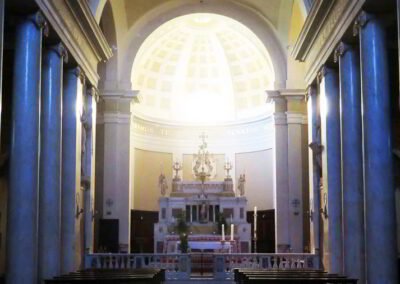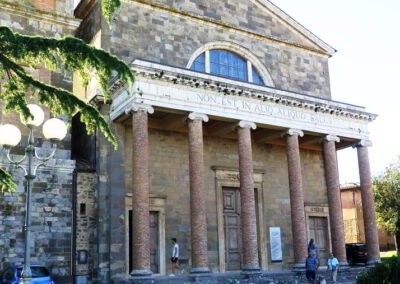 The Cattedrale del Santissimo Salvatore, located on Via Spagni in Montalcino, Italy, stands as a graceful example of neoclassical architecture and spiritual devotion. Originally built in the 14th century, the cathedral was reconstructed in the early 19th century under the guidance of architect Agostino Fantastici, who gave it the harmonious and elegant appearance seen today. Its façade, marked by tall columns and a triangular pediment, exudes a sense of balance and serenity, while the interior features soft light, marble altars, and notable works of sacred art. The cathedral remains a vital centre of worship for the local community and a key stop for visitors exploring Montalcino’s historic heart. Surrounded by charming streets and overlooking the Tuscan countryside, the Cattedrale del Santissimo Salvatore embodies both religious tradition and architectural refinement, inviting travellers to pause, reflect, and admire its timeless beauty and peaceful atmosphere.