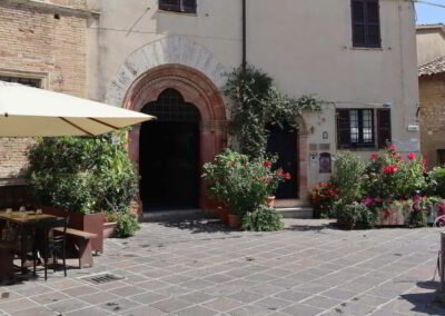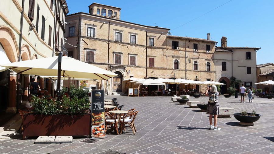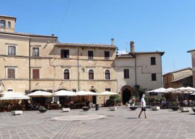 Piazza del Comune, located in the heart of Montefalco in Umbria, Italy, is a beautifully preserved medieval square that serves as the social and cultural centre of the town. Surrounded by elegant historic buildings, including the 13th-century Palazzo Comunale, the piazza reflects Montefalco’s rich artistic and civic heritage. Its harmonious architecture, stone pavements, and charming arcades create a welcoming atmosphere where locals and visitors gather to enjoy coffee, conversation, and the tranquil rhythm of Umbrian life. The square is also home to small shops, cafés, and restaurants offering regional specialties and fine local wines, including the celebrated Sagrantino di Montefalco. From the piazza, narrow streets lead to panoramic viewpoints overlooking the valley below, enhancing its reputation as the “balcony of Umbria.” Piazza del Comune remains a timeless symbol of Montefalco’s elegance, community spirit, and enduring connection to its medieval past.