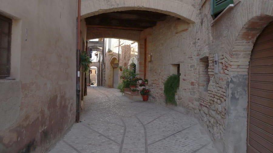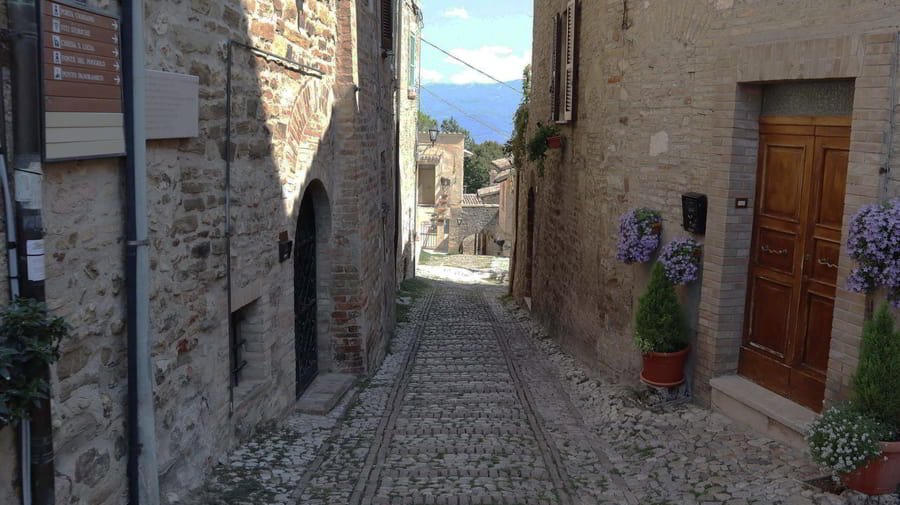 The walk starts in Corso Goffredo Mameli – Piazza del Comune – Centro Storico – Via Ringhiera Umbra – Piazza del Comune – Vicolo degli Operai – Piazza del Comune – Via Porta Camiano – Piazza del Comune – Corso Goffredo Mameli