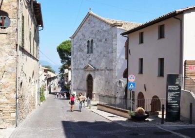 Montefalco is also known for its traditional cuisine, which is deeply rooted in Umbrian culinary traditions. Local dishes often feature hearty ingredients such as legumes, truffles, wild boar, and lamb. Pasta dishes like strangozzi, a type of thick, hand-rolled pasta, are commonly served with rich meat sauces or truffle shavings. The town’s restaurants and trattorias offer visitors a chance to savour these authentic flavours while enjoying the warmth and hospitality of the local people. Montefalco hosts several festivals and events throughout the year that celebrate its cultural heritage and local traditions. One of the most famous is the Settimana Enologica, or Wine Week, held every September. This event showcases the town’s wines, with tastings, guided tours of wineries, and educational seminars about the region’s viticulture. It’s a perfect opportunity for wine lovers to immerse themselves in Montefalco’s winemaking culture. Another significant event is the Fuga del Bove, a historical re-enactment held in August that features parades, medieval tournaments, and a traditional bull run, all evoking the town’s medieval past. The event is a lively and colourful celebration that brings the entire community together. Beyond its historic and cultural attractions, Montefalco is surrounded by some of the most beautiful landscapes in Umbria. The town offers panoramic views of the Umbrian valley, including the rolling hills covered with vineyards, olive groves, and forests. The surrounding countryside is perfect for hiking, cycling, and exploring the many medieval villages and towns that dot the region. Montefalco is also close to several other notable Umbrian towns, including Assisi, Spoleto and Perugia, making it an ideal base for exploring the region. Each of these towns has its own unique history, architecture, and cultural attractions, offering a diverse and enriching experience for visitors. Montefalco is a destination that offers a perfect blend of history, culture, winbreathtaking views make it a truly special place to visit.