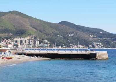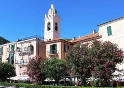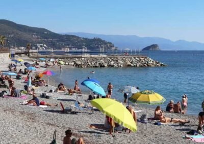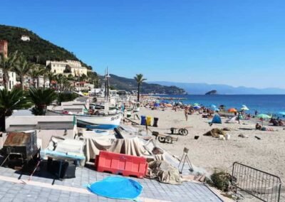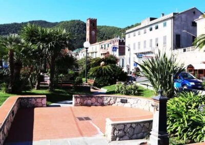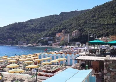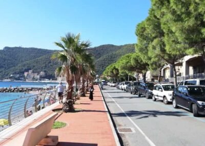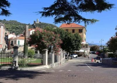 One of the most striking features of Noli is its impressive fortifications, including the remains of its medieval walls and towers. The most prominent of these is the Castello di Monte Ursino, a fortress perched on a hill overlooking the town. The castle offers panoramic views of Noli and the surrounding coastline, making it a popular spot for visitors. The fortress itself, dating back to the 10th century, is a testament to Noli’s strategic importance and its turbulent history, having withstood numerous sieges and attacks over the centuries. Noli’s location along the Ligurian coast makes it an ideal destination for those seeking sun, sea, and sand. The town’s beach, with its fine golden sand and crystal-clear waters, is one of the most beautiful in the region. The beach is sheltered by the surrounding hills, creating a tranquil and scenic setting for swimming, sunbathing, and water sports. The waters off Noli are perfect for snorkelling and diving, with rich marine life and underwater archaeological sites to explore. The promenade along the seafront, lined with palm trees and colourful fishing boats, offers a picturesque setting for a leisurely stroll. From here, visitors can admire the beauty of the Gulf of Noli and the dramatic cliffs that rise steeply from the sea. The coastline is dotted with small coves and secluded beaches, accessible by foot or by boat, providing the perfect escape for those looking to enjoy the natural beauty of the Ligurian Riviera.