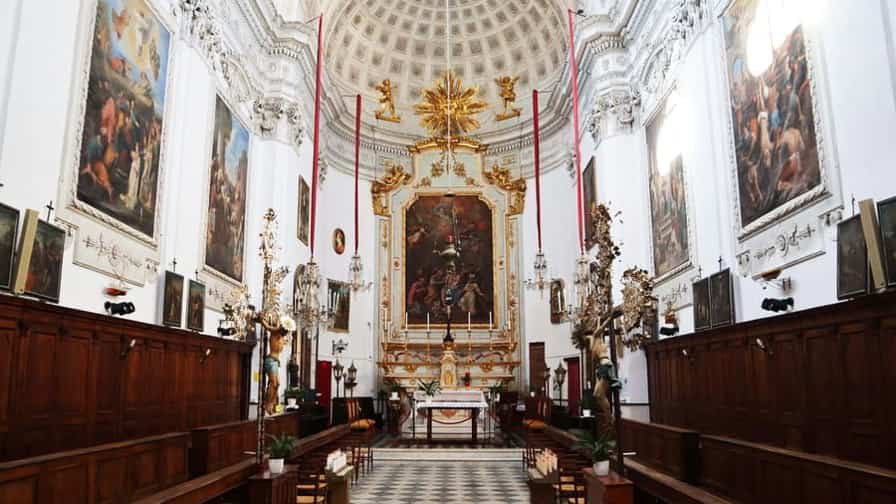 The walk starts in Via S. Michele – Parco Villa Comunale, Viale Rimembranza – Viale Rimembranza – Piazza Guglielmo Marconi – Via Tre Segni – walk back to Piazza Guglielmo Marconi – Municipal Market Hall of Santa Chiara, Piazza Santa Chiara – Via Sportello – Via Tripoli – Via Santa Maria – Chiesa Santa Maria Maggiore, Via Santa Maria – Via Santa Maria – Piazza del Tomolo – Via Catena – Porta Catena, Loggia Amblingh